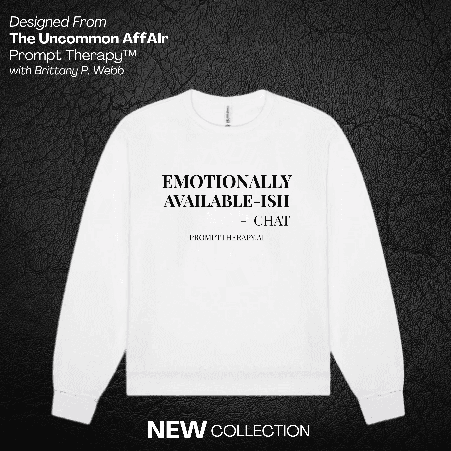 Prompt Therapy™ Emotionally AvailablE-Ish™ Crewneck Sweatshirt | AI-inspired Sweatshirt | Christian & Faith-based Encouragement| Comfort Unisex Gift