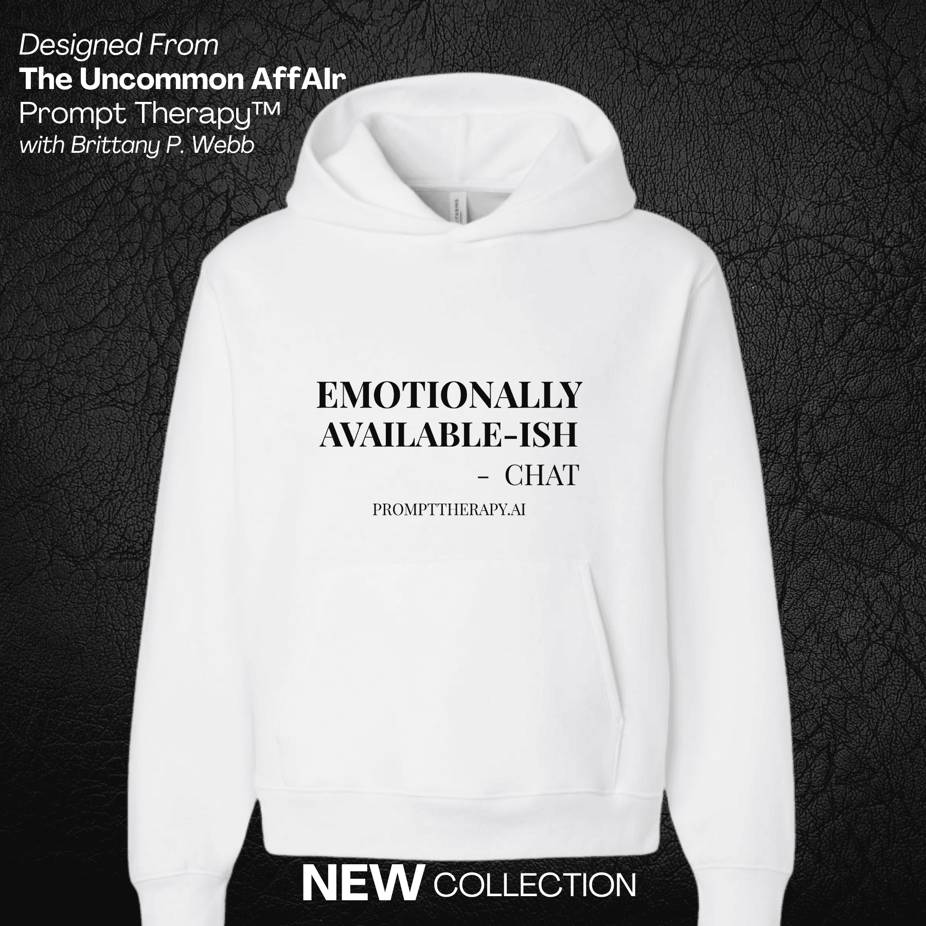 Prompt Therapy™ Emotionally AvailablE-Ish™ Hoodie Sweatshirt | AI-inspired Sweatshirt | Christian & Faith-based Encouragement| Comfort Unisex Gift