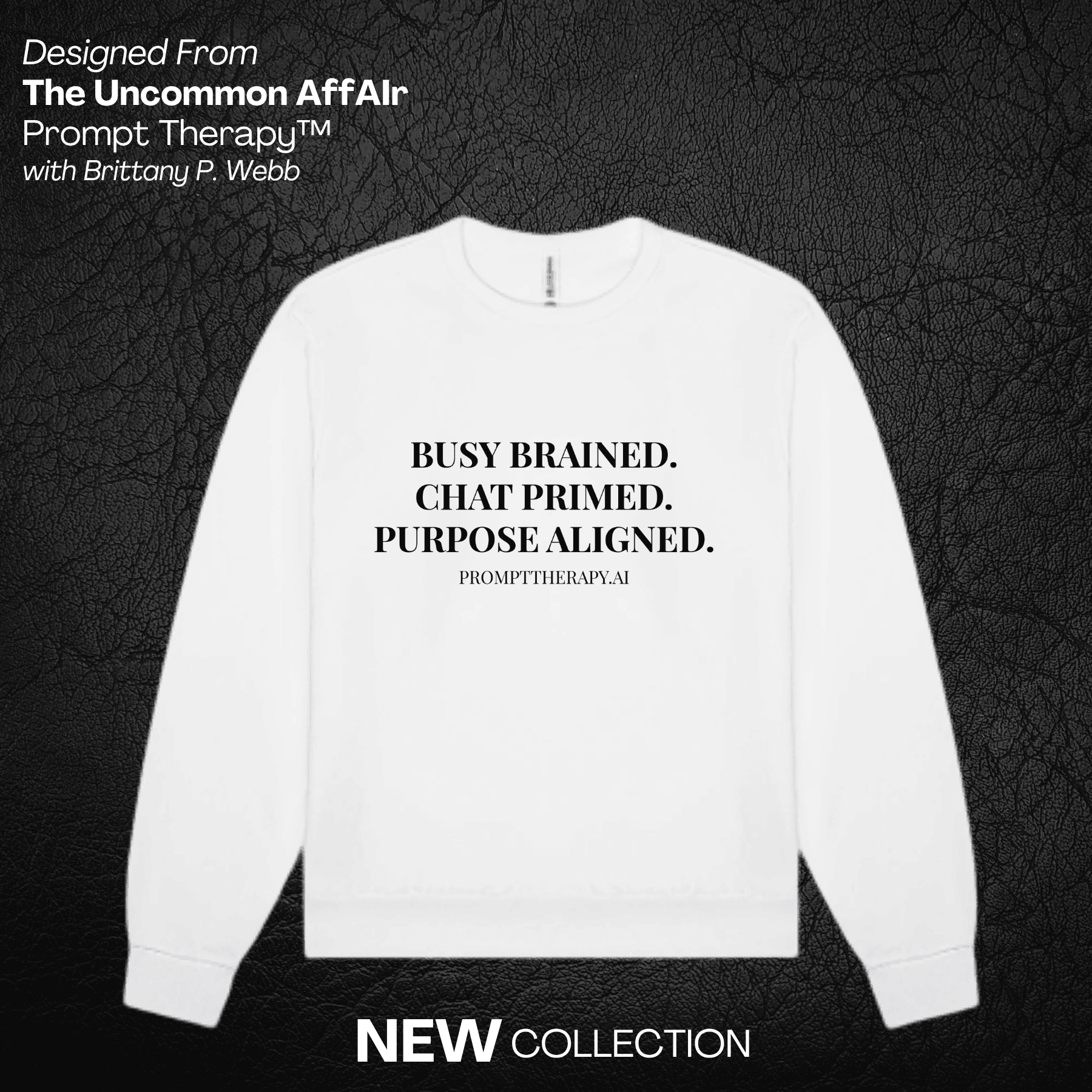 Prompt Therapy™ Busy Brained with Purpose. Crewneck Sweatshirt | AI-inspired Sweatshirt | Christian & Faith-based Encouragement| Comfort Unisex Gift
