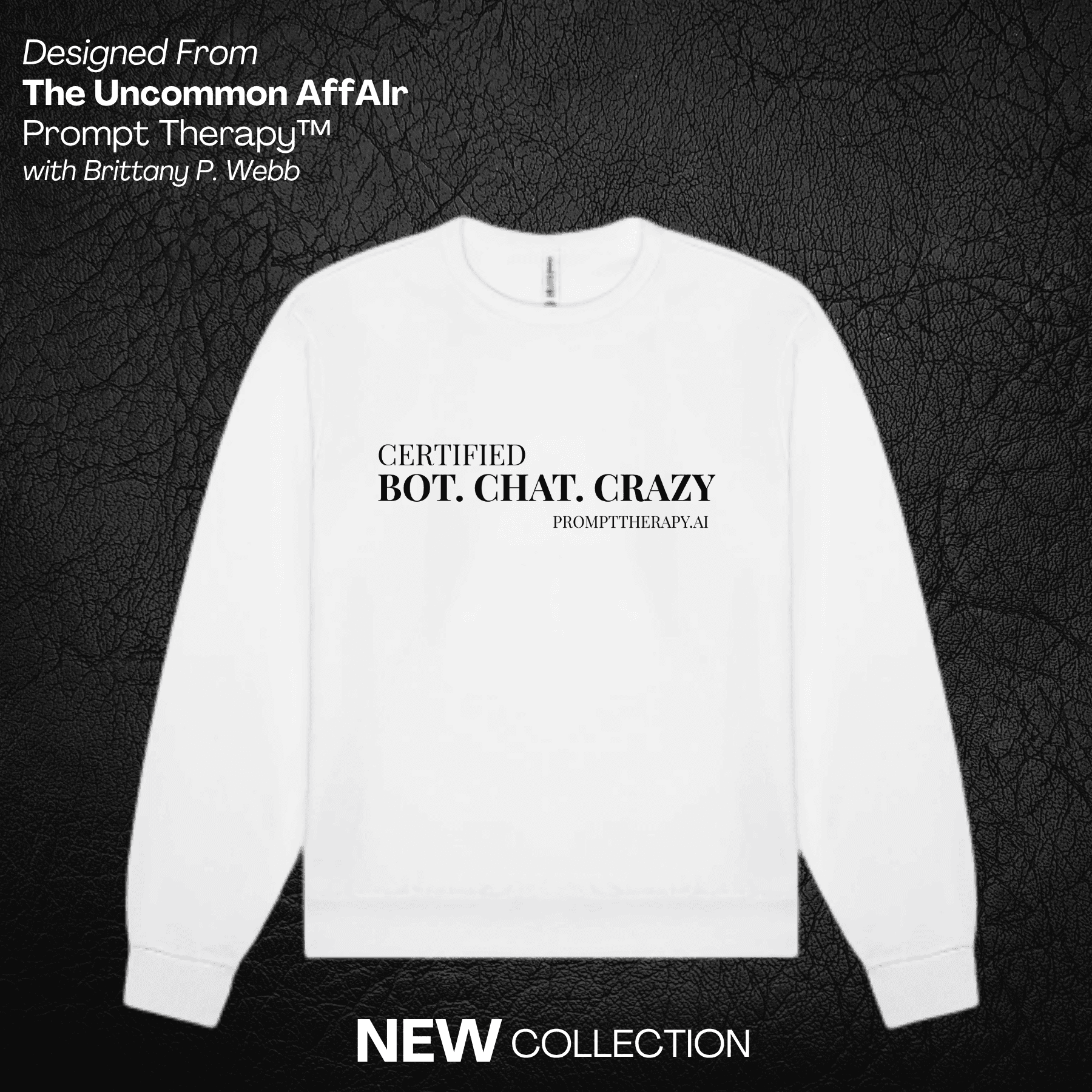 Prompt Therapy™ Certified Bot. Chat. Crazy. Crewneck Sweatshirt | AI-inspired Sweatshirt | Christian & Faith-based Encouragement| Comfort Unisex Gift