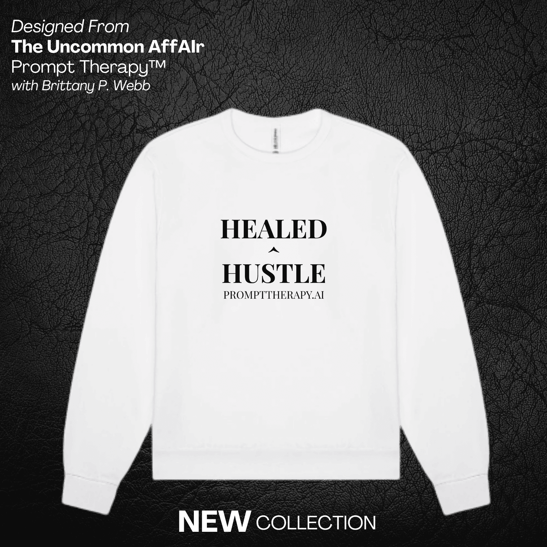 Prompt Therapy™ Healed over Hustle. Crewneck Sweatshirt | AI-inspired Sweatshirt | Christian & Faith-based Encouragement| Comfort Unisex Gift