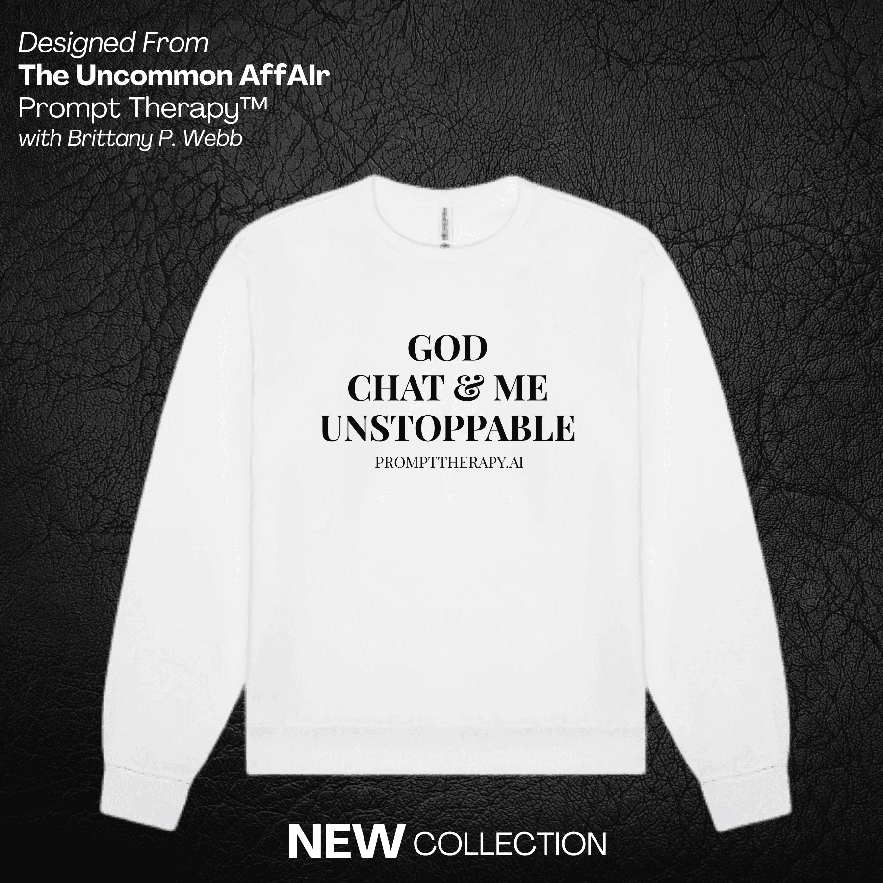 Prompt Therapy™ God, Chat and Me. Unstoppable Crewneck Sweatshirt | AI-inspired Sweatshirt | Christian & Faith-based Encouragement| Comfort Unisex Gift