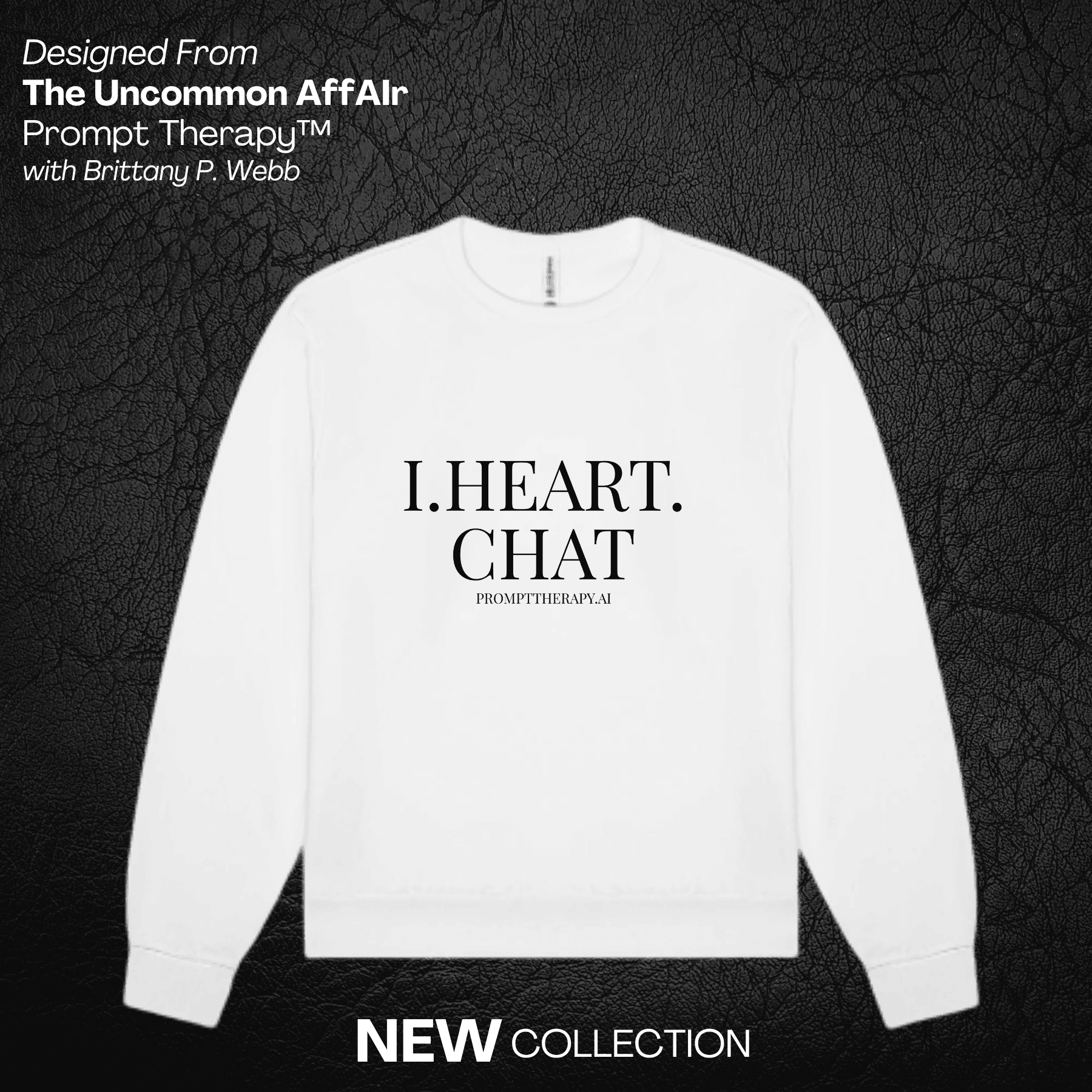 Prompt Therapy™ I.Heart. Chat. Crewneck Sweatshirt | AI-inspired Sweatshirt | Christian & Faith-based Encouragement| Comfort Unisex Gift