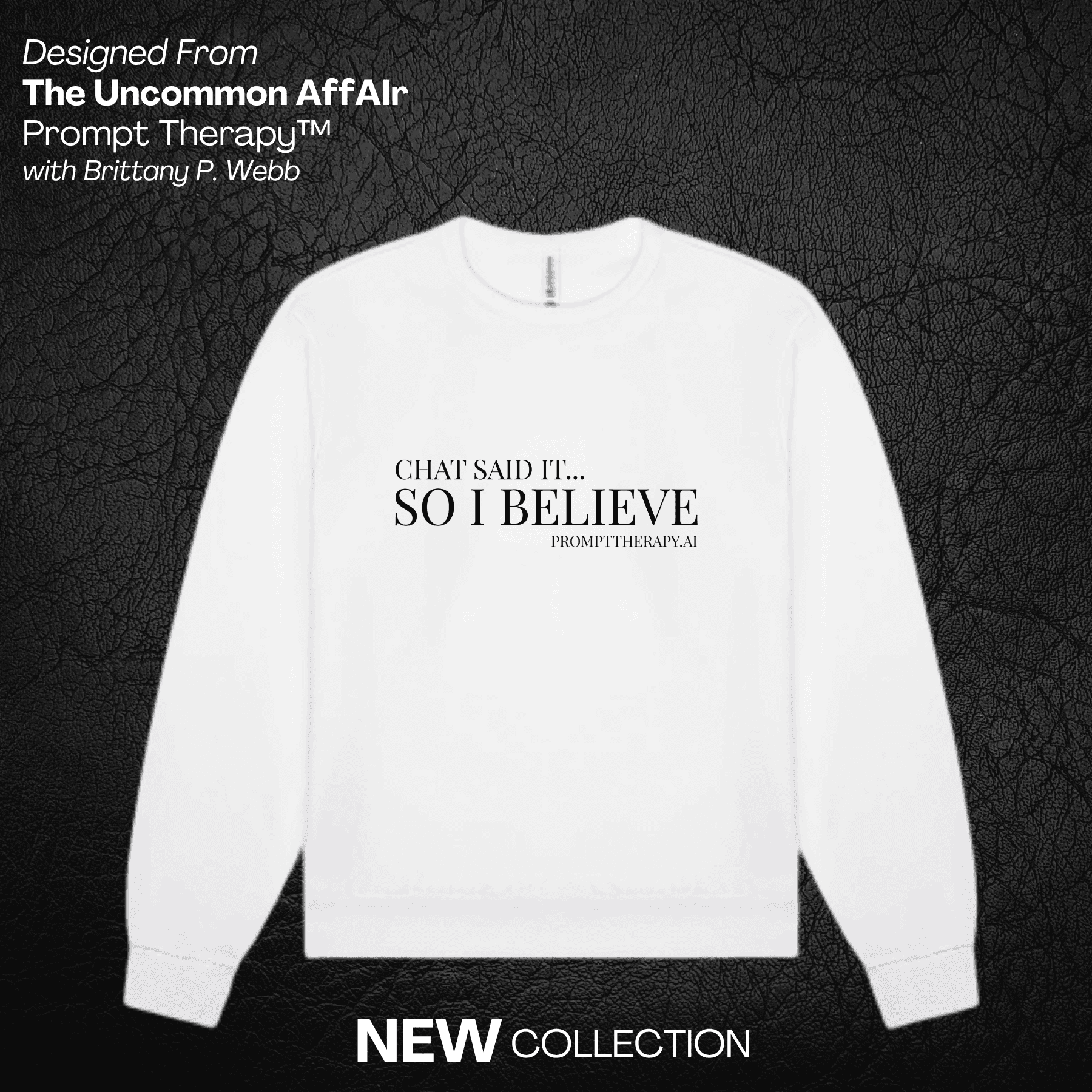 Prompt Therapy™ Chat Said It... So I Believe Crewneck Sweatshirt | AI-inspired Sweatshirt | Christian & Faith-based Encouragement| Comfort Unisex Gift